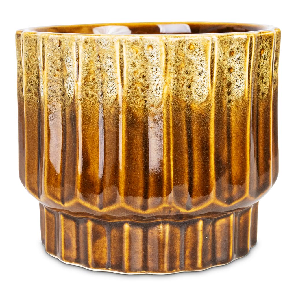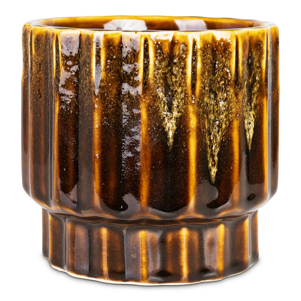 Meet Faye - a small scalloped statement. Warm shades of toasted pecan and walnut overlay a marshmallow and chocolate glazed base. The cosiest charismatic addition for your corner.