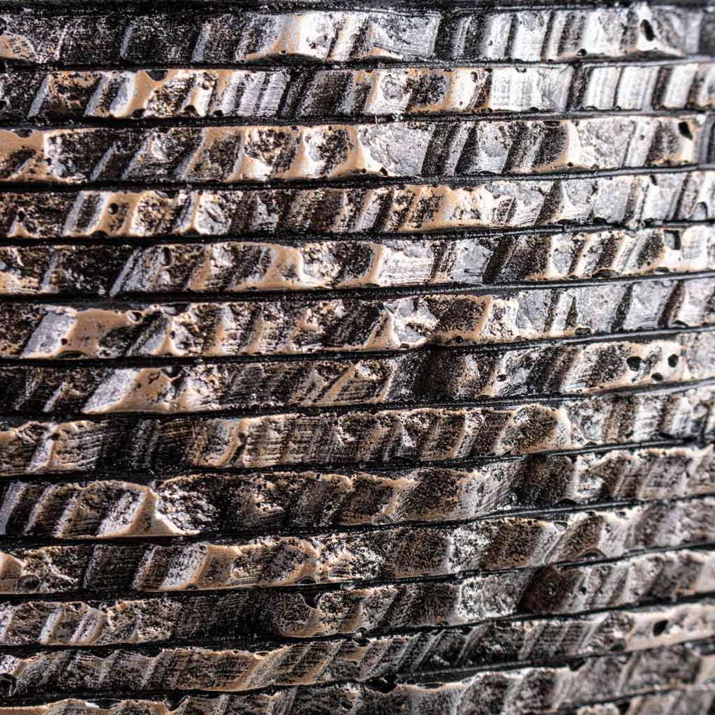 The Layer planter is handmade with structured layers of bronze effect stones that combine with a contemporary spherical shape for unique and bold floor standing indoor greenery.