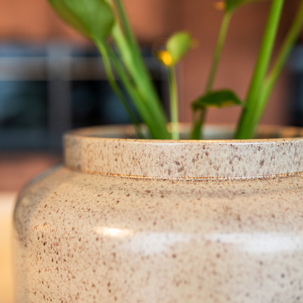 Softly sculpted with rounded shoulders and base, the Rocky pot brings simplicity and softness. Its cylindrical styling narrows gracefully to a gentle collar, finished in a soothing warm, freckled neutral glaze. A modern, minimal canvas to let your plant do the talking.