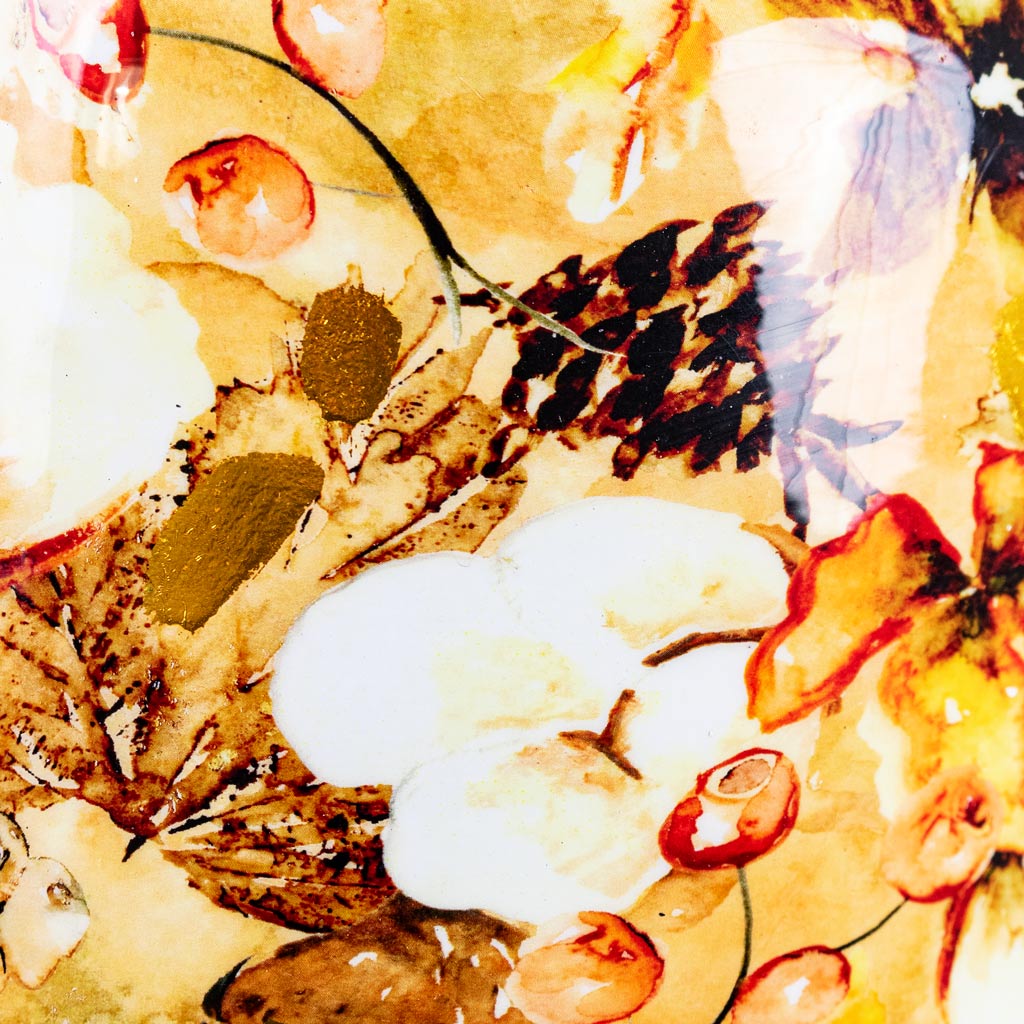 Lammie's elegant design features nature-inspired artwork on its surface. The yellow and cream toned vase is beautifully moulded and adorned with delicate flower designs beneath a lustrous gloss. Subtle gold embellishments add a touch of opulence and luxury.