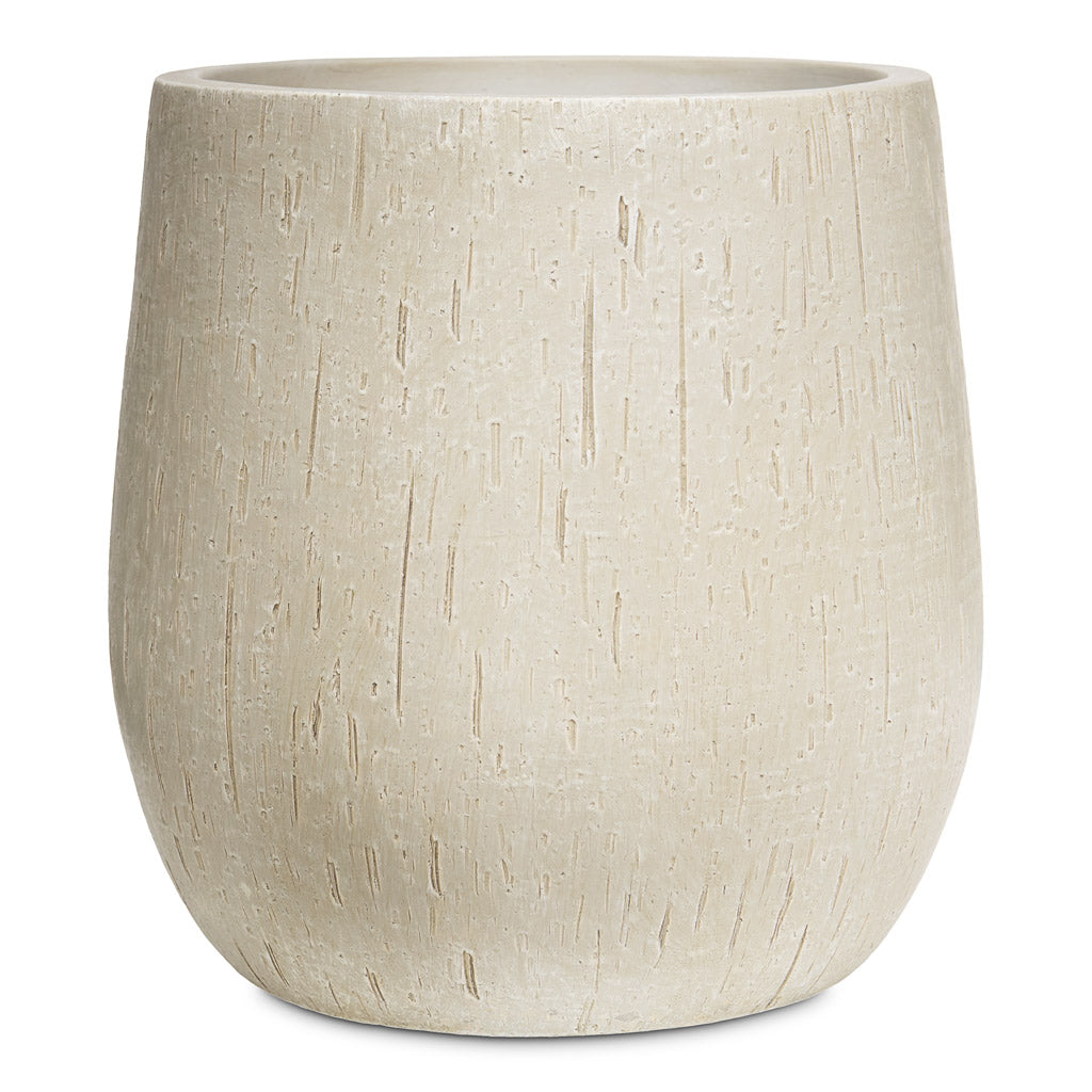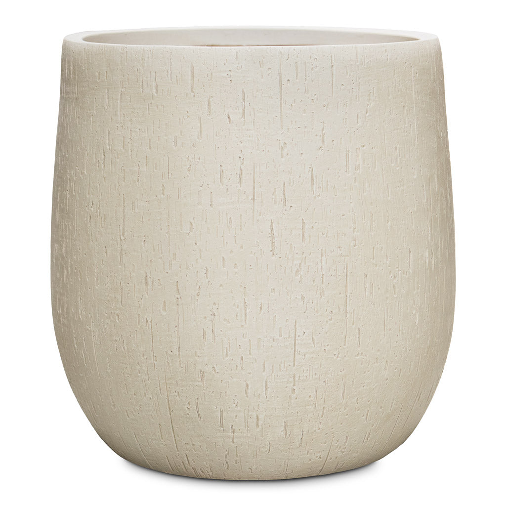 The plump curved design is made from fiberclay, a combination of clay applied to a fibreglass structure for a durable, lightweight planter with UV and frost protection.