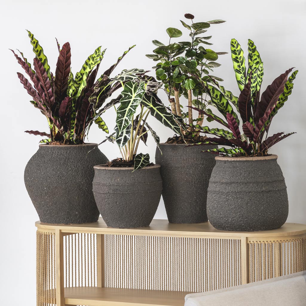 Channel the nurturing spirit of Hestia, the goddess of hearth and home. Inspired by the graceful lines of Ancient Greek urns and amphorae, Hestia's rich espresso stone styling brings an air of timeless sophistication and cosy comfort to your green displays.