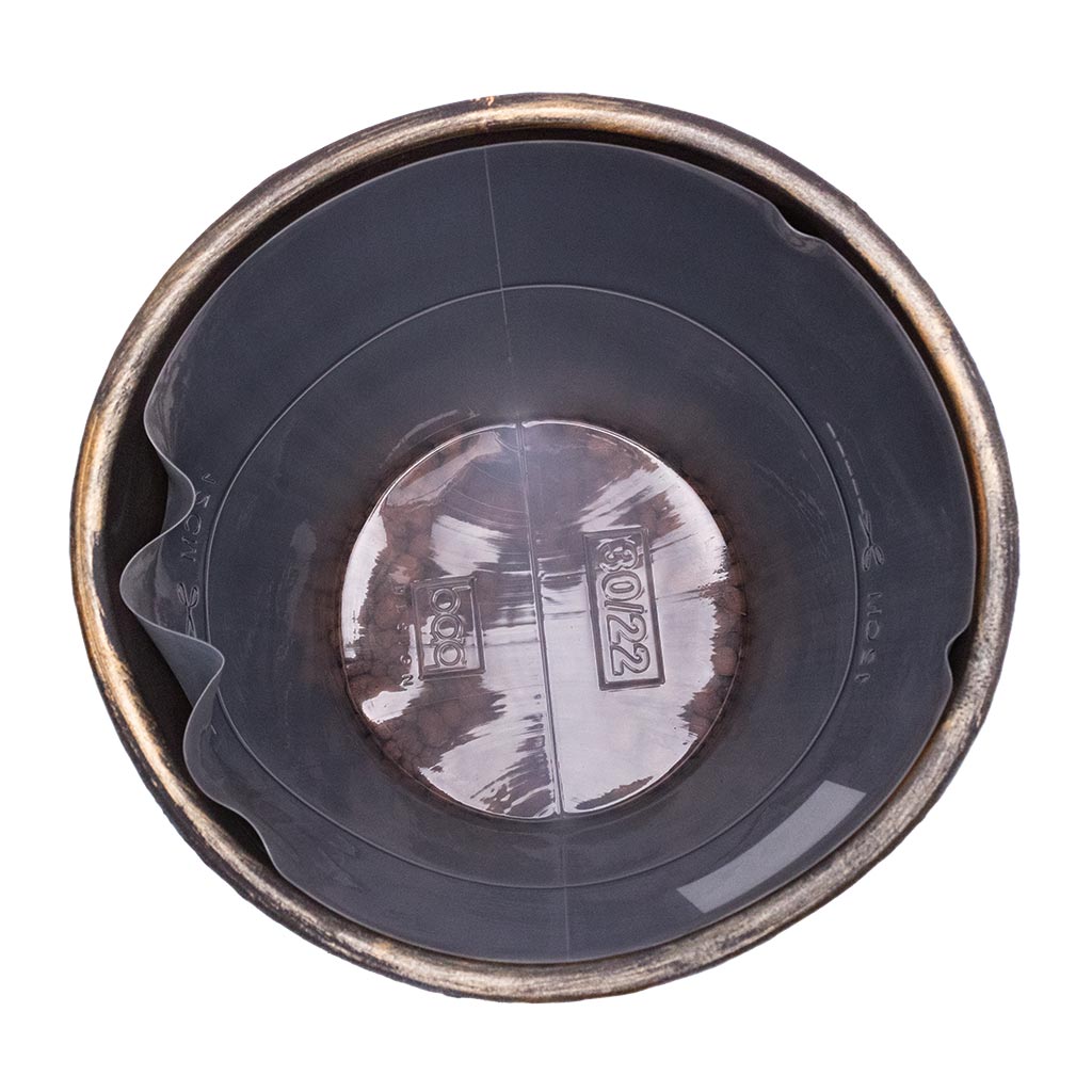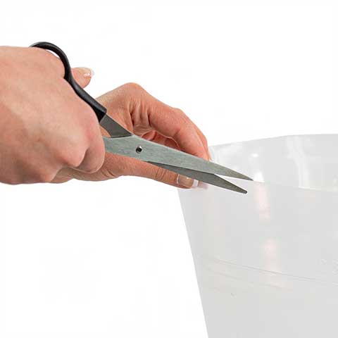 Place the liner in the decorative planter and push down to the base, to ensure it covers any drainage holes in the base of the decorative planter.
