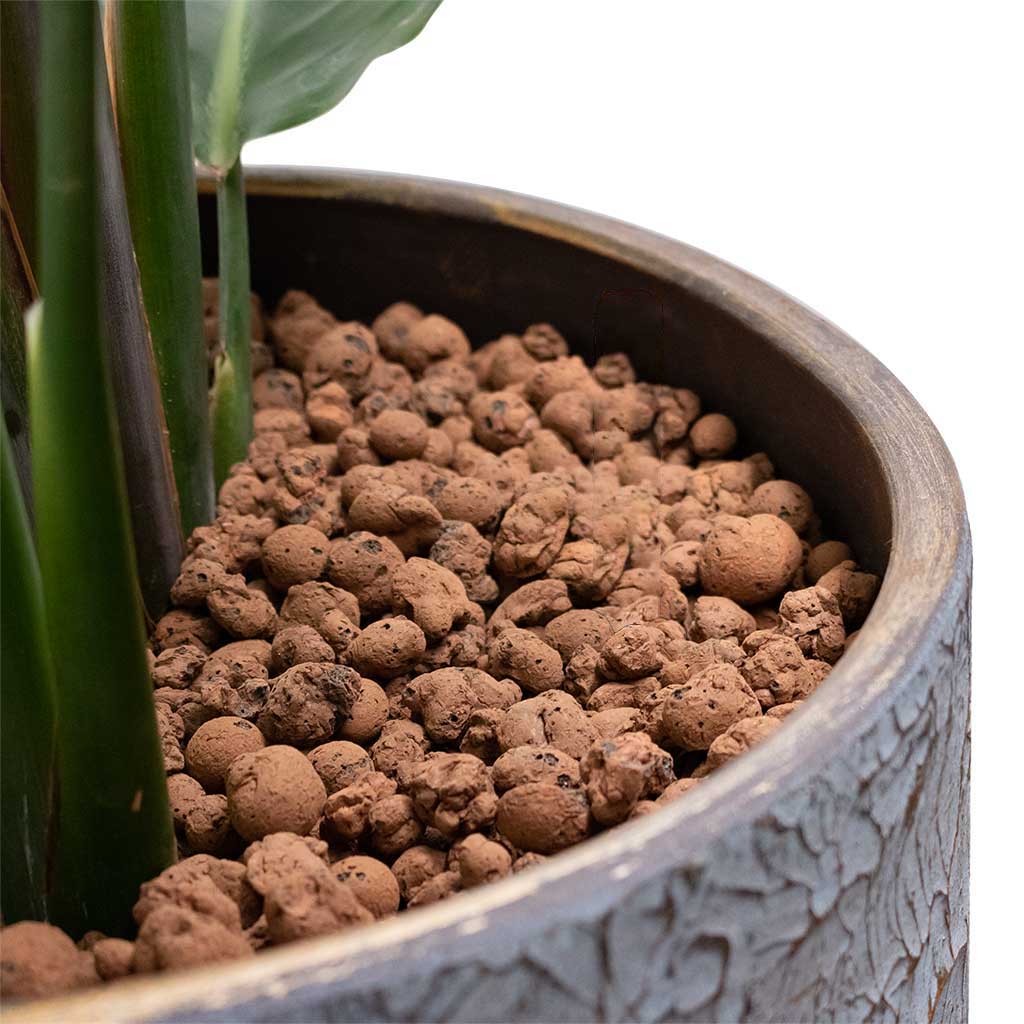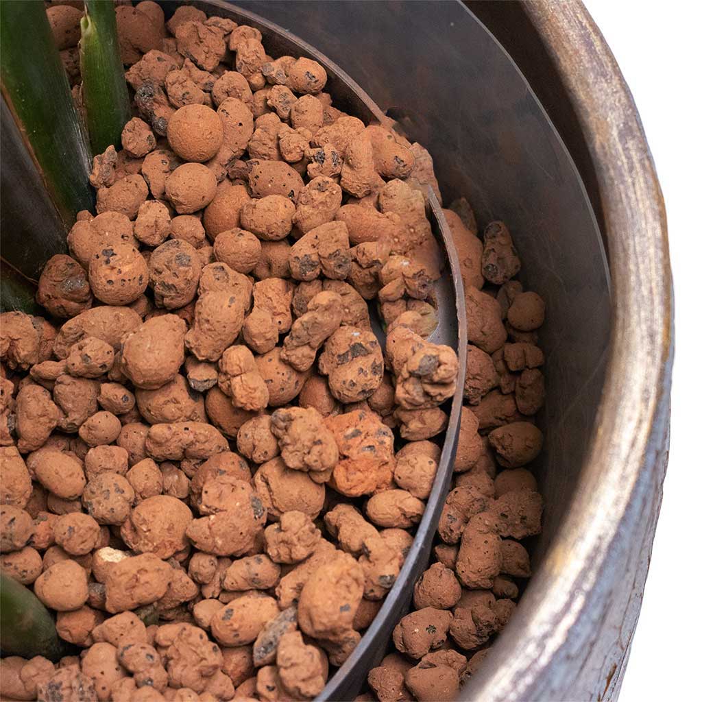 Add a cover of clay pebbles to the top to hide the grow pot rim and any liner that shows.