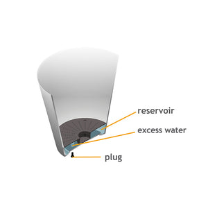 Each planter has a plug to make it watertight for indoor use. For outdoor use, simply remove the plug to allow excess rainwater to drain from the reservoir.