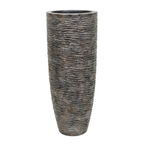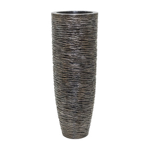 The Wrinkle planter is handmade with bronze effect textured grooves that combine with a contemporary tall vase shape for unique and bold floor standing indoor greenery.