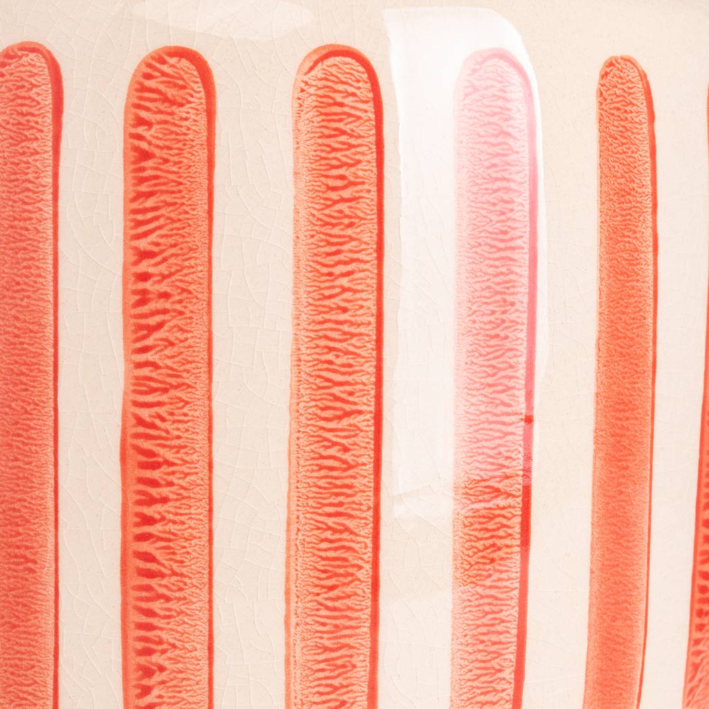 The pot with panelling. Red watercolour pillars decorate an ivory ceramic base to give your greenery a pop of pizazz.